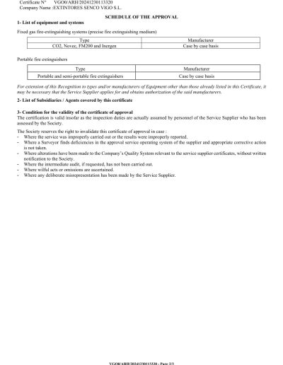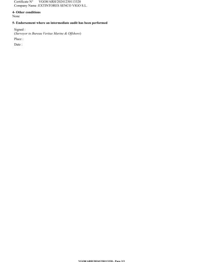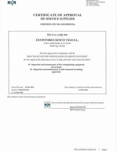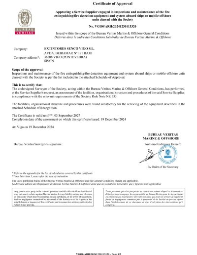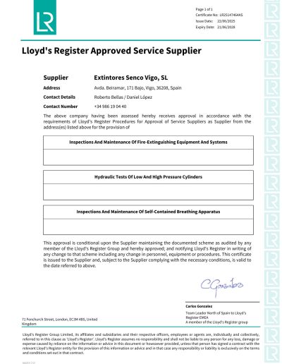 - Empresa certificada como Service Supplier por Bureau Veritas, RINA y Lloyd´s.