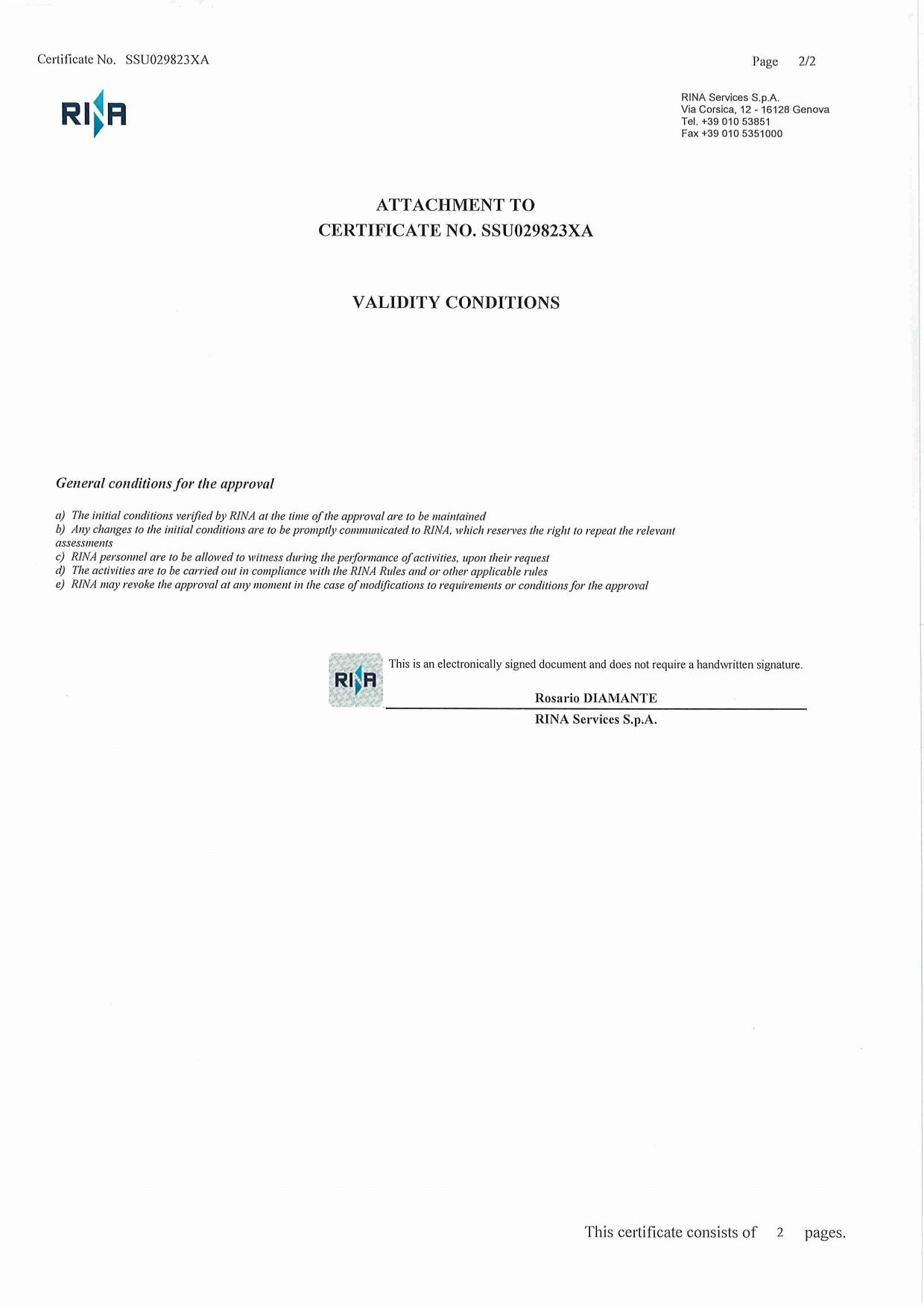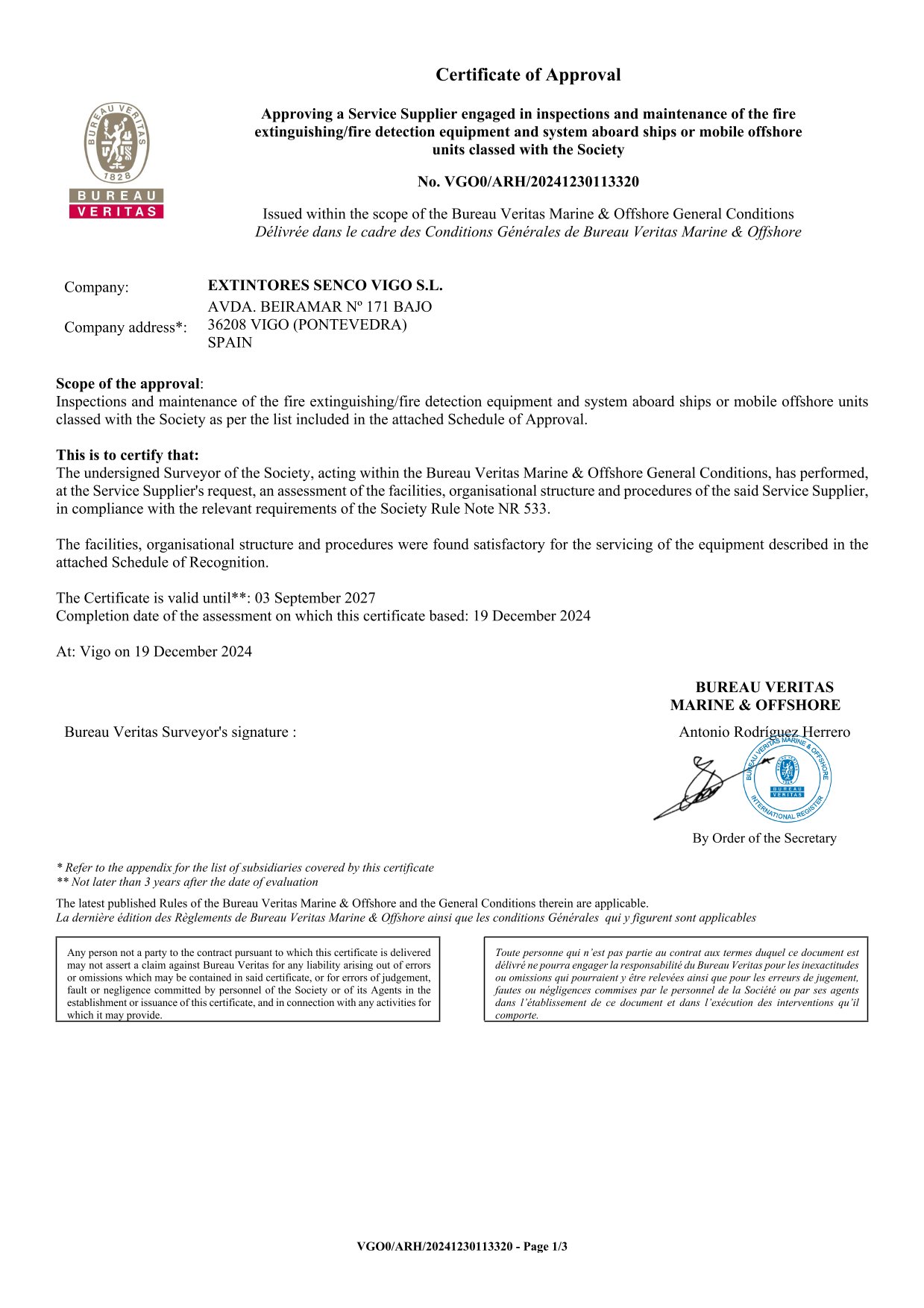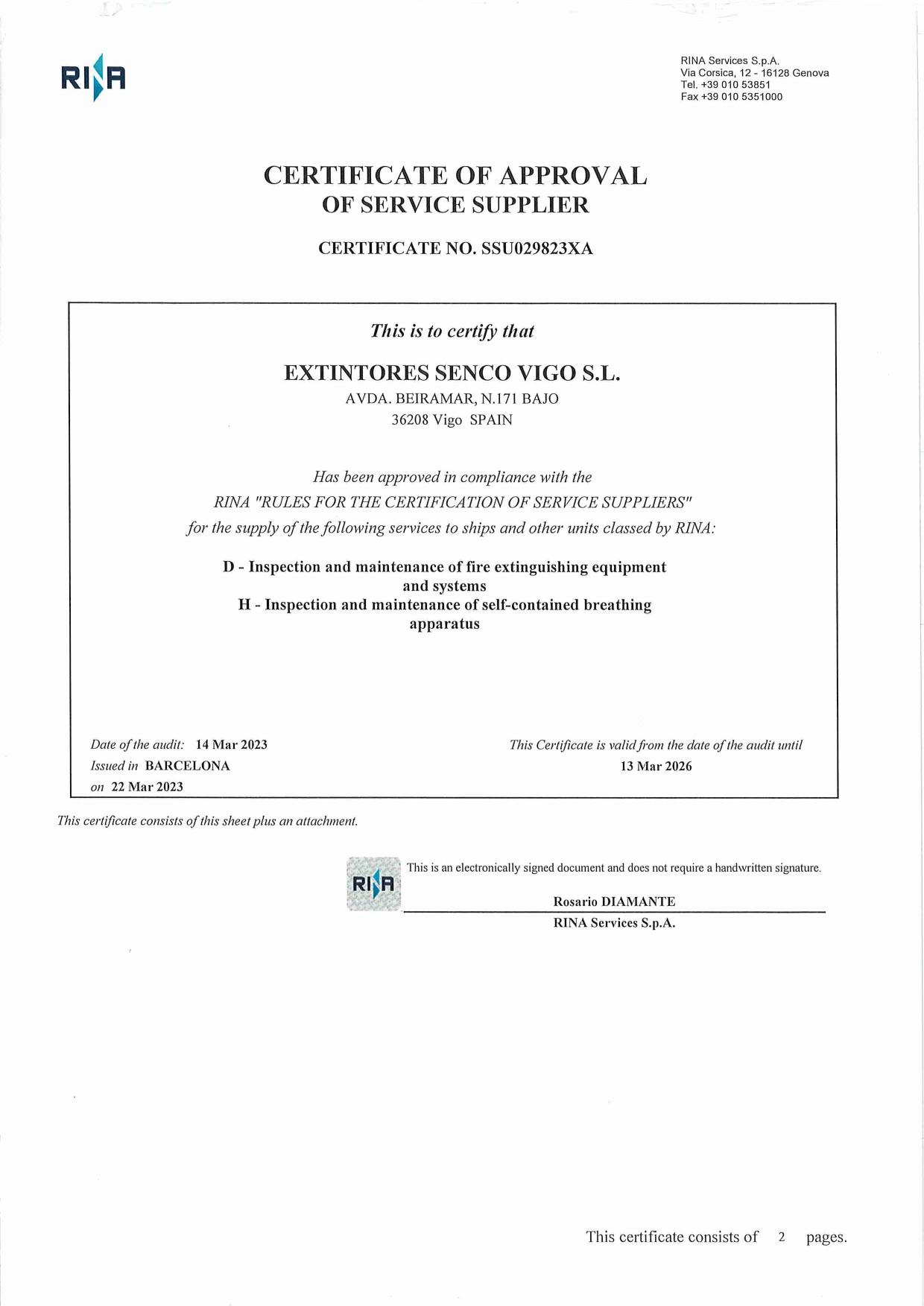 - Empresa certificada como Service Supplier por Bureau Veritas, RINA y Lloyd´s.